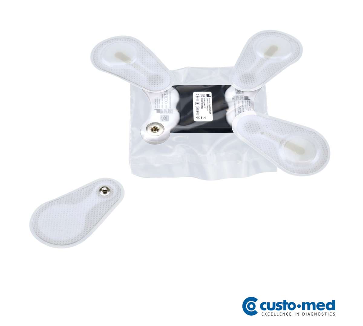 - Electrode spéciale jetable Custo wing : Réduction des artéfacts et optimisation du signal grâce à des connexions décentralisées et à une surface adhésive entièrement couverte - matériau en tissu non tissé respirant.