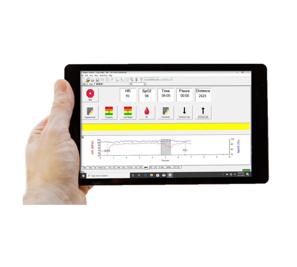 Le test des patients a été rendu plus facile en combinant l’option de test de marche de six minutes (6MWT) du logiciel BreezeSuite avec l’oxymètre de pouls Bluetooth Nonin® WristOx2™ 3150.