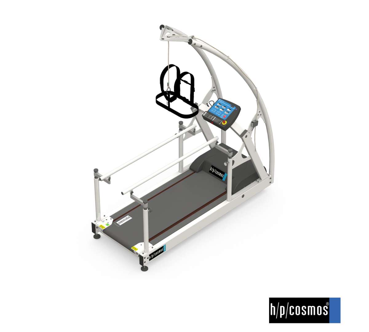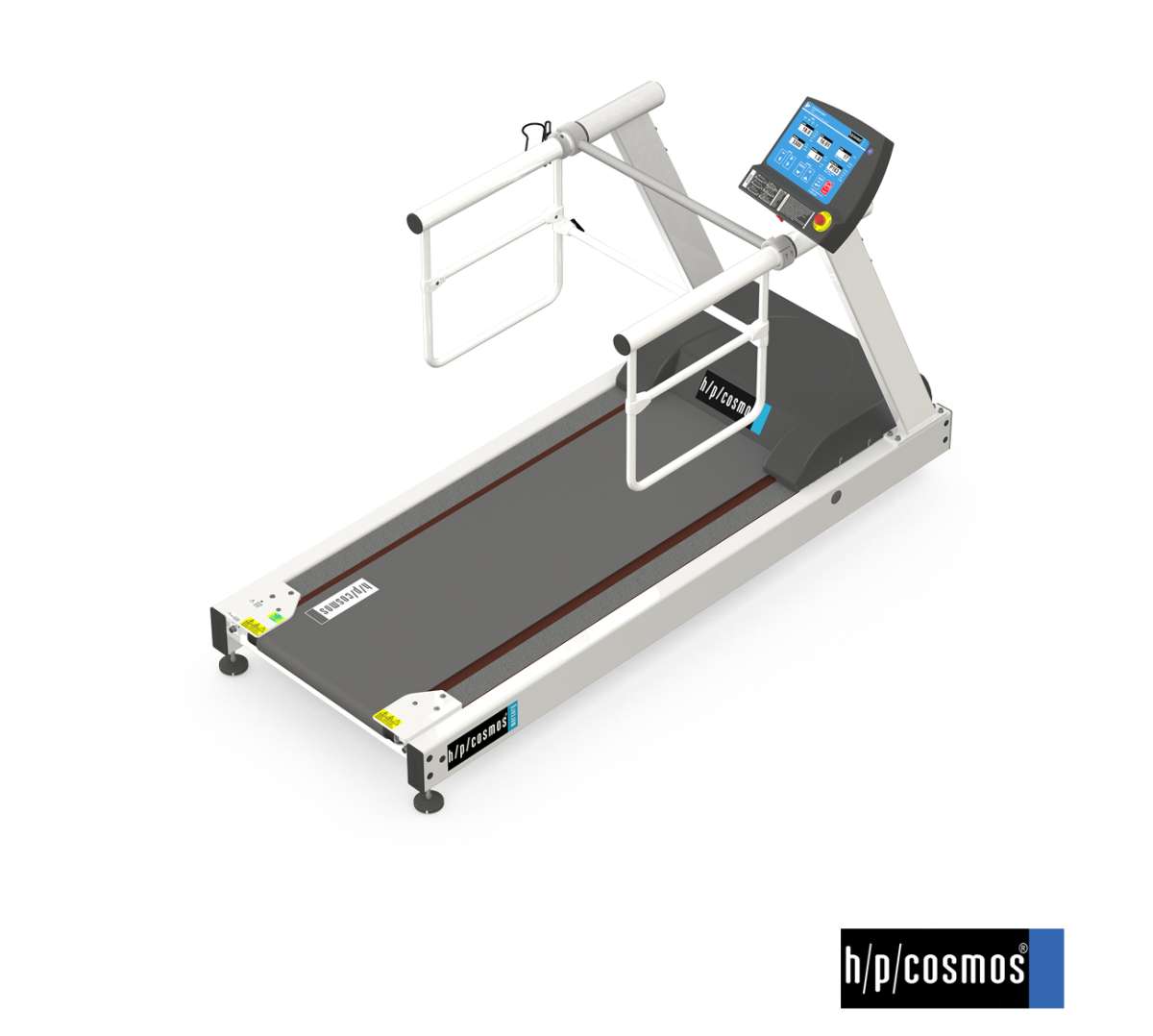 Le Mercury® med de h/p/cosmos, approuvé pour un usage médical, avec 2 caméras, un arceau de sécurité et une rotation inversée de la bande de roulement est la solution parfaite pour les applications thérapeutiques, rééducatives ou orthopédiques.