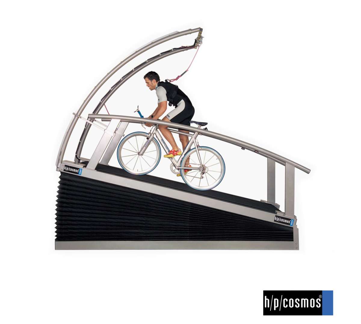 Les cyclistes atteignent des vitesses parmi les plus élevées de tous les sports, 80 km/h (~ 50 mph) et plus dans la classe supérieure. Un tapis de course qui doit être utilisé dans cet environnement doit offrir assez d'espace et avoir une accélération extrêmement rapide - permettant aussi une conduite rapide en danseuse. Il est crucial que la bande de roulement ait une très faible résistance au roulement des roues. Le saturn® 300/100r de h/p/cosmos, avec une vitesse spéciale de 80 km/h, permet à la fois des performances physiologiques et des analyses biomécaniques - sous des conditions optimales et reproductibles. La bande de roulement a une très faible résistance au roulement des roues.