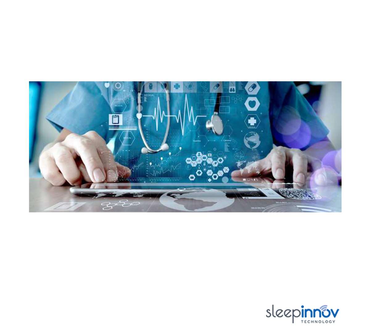 The BlueNight® Trainer ambulatory system includes a Nonin-type oximetry sensor, a tablet pre-installed with BlueNight® software and BlueNight® Acor + software to manage patient data on your PC.